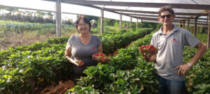 O casal Darceli e Ilóivia Chassot, de Cerro Largo (RS), participa do projeto da Embrapa desde o início. Eles cultivam 12 mil mudas de morangueiro na propriedade e afirmam que a Fênix superou expectativas.