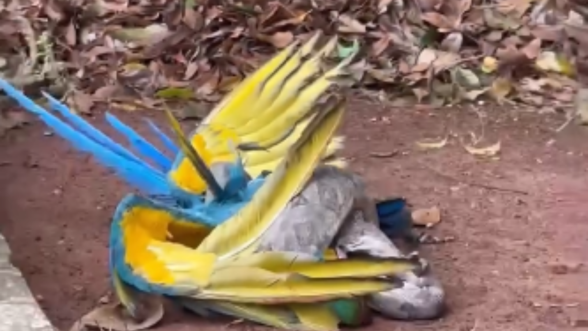A bióloga Thaís Buzetti registrou um momento raro de predação no Parque dos Poderes, em Campo Grande (MS). Uma jiboia atacou uma arara-canindé que pesquisadores monitoravam há cinco anos na região.