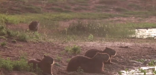 - Capivaras foram flagradas quase sendo surpreendidas por uma onça-pintada durante uma caçada silenciosa, mas conseguiram escapar ilesas graças à sua atenção aos movimentos do predador.