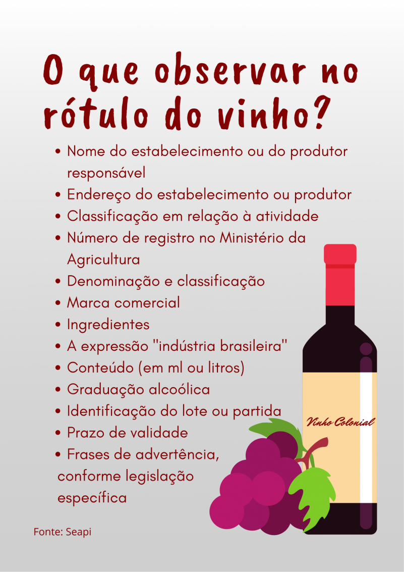 - Vinhos falsificados com rótulos de "vinho colonial" foram encontrados, porém a venda desses produtos em estabelecimentos convencionais é ilegal, segundo a Lei Federal nº 12.959.