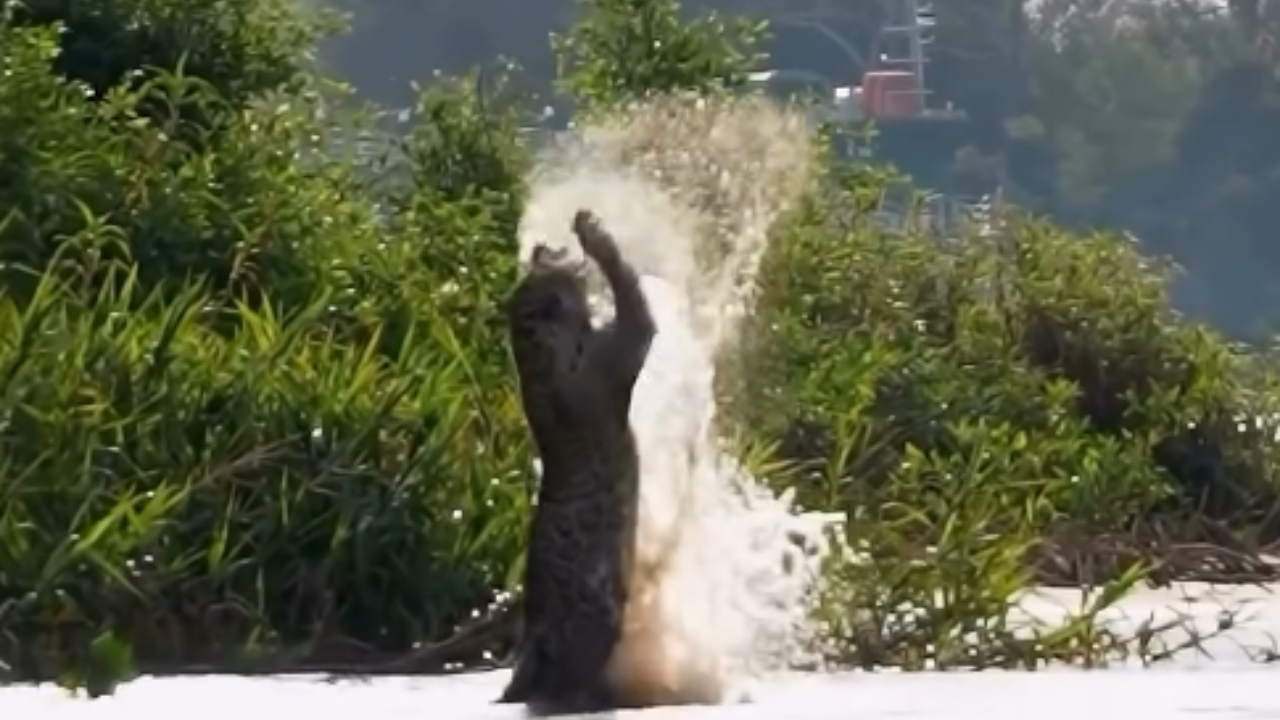 - Um turista britânico registrou a onça-pintada Patrícia saltando sobre o Rio Cuiabá, enquanto caçava mutucas, em um vídeo que viralizou nas redes sociais, destacando sua agilidade e beleza no Pantanal.