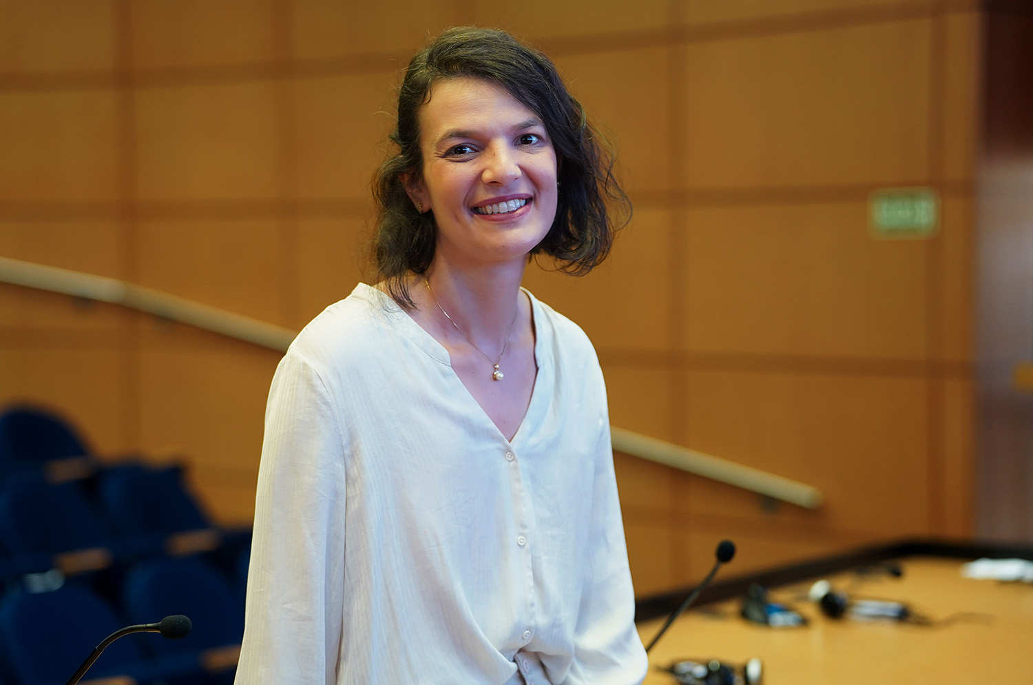 Gabriela Prestes Carneiro, pesquisadora do Museu Nacional de História Natural da França, durante o Fórum Brasil-França, na FAPESP: sambaquis são locais de memória que foram visitados, reconstruídos e reocupados desde cerca de 3 mil anos atrás. Foto: Daniel Antônio/Agência FAPESP