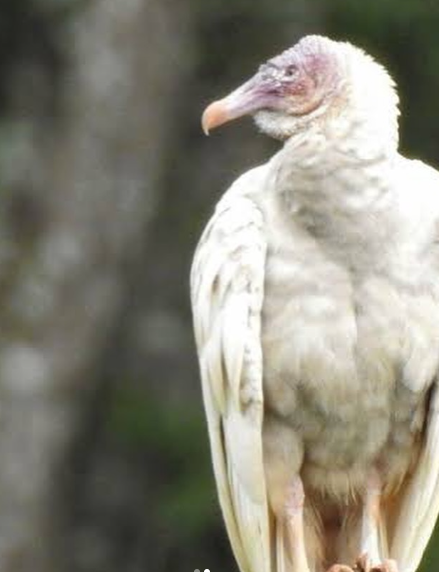 - O albinismo, mutação genética que impede a produção de melanina, causa plumagem branca e olhos avermelhados, afetando a visão e a sobrevivência do urubu.