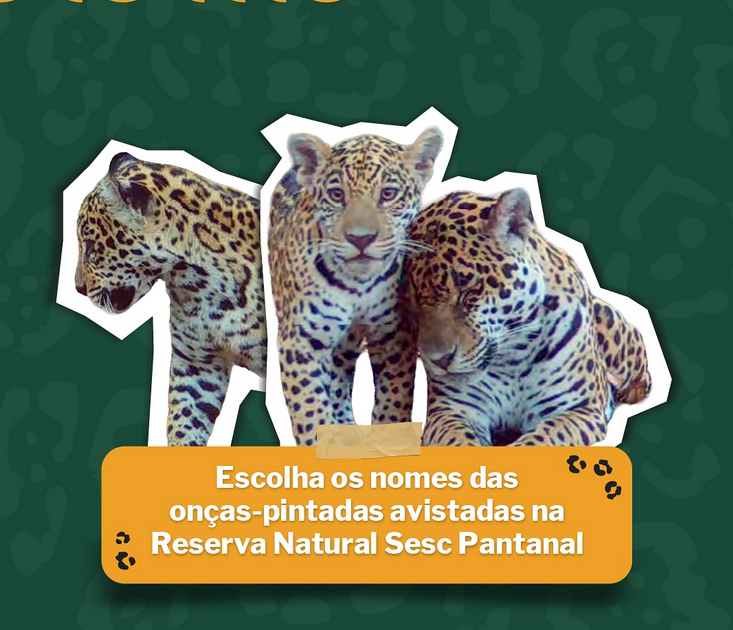 Uma mãe onça-pintada e suas duas filhotes aguardam nomes escolhidos pelo público brasileiro. A votação acontece nos perfis do Instagram @sesc_pantanal e @sescbrasil e termina nesta segunda-feira, 29 de setembro.